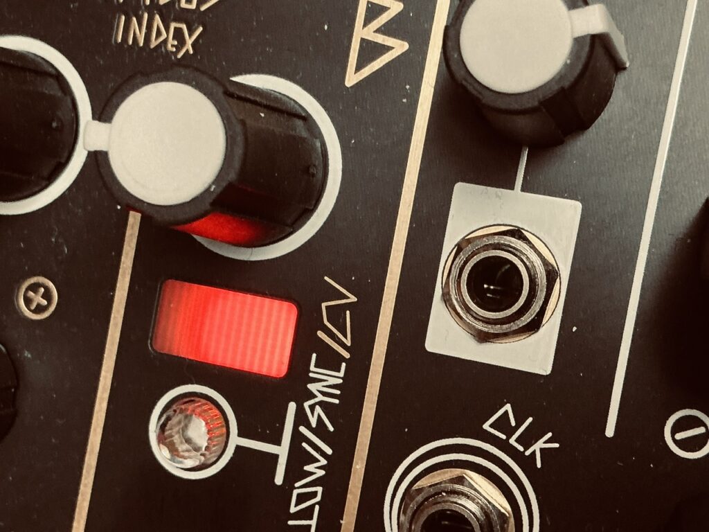 The input for this voice was simple. A sine wave from STO, enveloped by Contour via Optomix, sequenced by sending a negative offset and attenuated triangle function from Maths to the input on Wogglebug, while using its Burst output to quantize the Stepped output in René’s X Channel. These notes by themselves were a bit plain; plain sine waves with a snappy envelope. But once they went through Echophon’s pitch shifter and recycled through its feedback Loop 1, these tones turned into dancing sparkles that floated upwards and away like fireworks. It’s these sorts of tones that the Echophon excels at, and I’m glad to have finally discovered some of its secrets. The only modulation was a slow moving triangle function from Multimod to the Mix knob which was at about 50% attenuation, though I think it did go full wet. The mix of a delay isn’t something I’d normally modulate, but with this input, constant repeats got very busy, very quickly. Adjusting the mix was the best option I could come up with, which worked great, especially since, because of being controlled by a vactrol, even full CCW on the Mix knob is never fully dry. Normally this sort of vactrol bleed is undesirable, though I’ve learned to really lean into vactrol bleed in other contexts, but in this piece it worked out wonderfully. It wasn’t until this patch that I was able to coax out some of Echophon’s magic sauce, and I’m here for more.