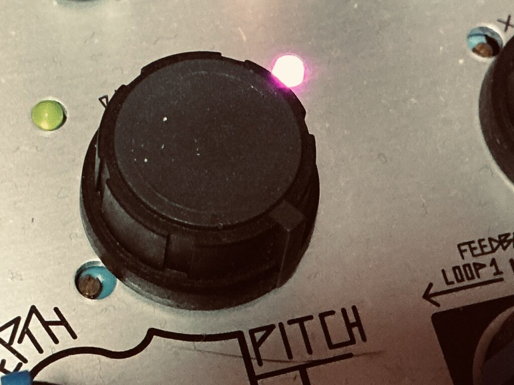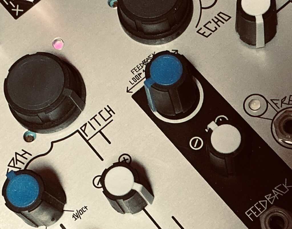 Normally with delays I tend towards longer delay times. Most of the stuff I make moves rather slow, and much of my delay use isn’t to induce echoes or repeats, but as a means to stretch out and lengthen tones; a means to fill in space and make already long tones longer. But I quickly discovered that although Echophon can delay up to 1.7 seconds, that’s not where it really shines.1 Echophon has a signature sound. It’s pretty easily identifiable when you hear it. It’s covered up with digital aliasing. The mix knob is controlled by a vactrol so it’s never fully dry. Sometimes that sound is great, but when it comes to much longer pitch shifted tones that sound can become distracting. But with the right input, and the right delay time and feedback settings, those metallic tones from Echophon can sound like Candyland in all the best sorts of ways. A shimmering wonderland of bouncing partials that spirals upwards.